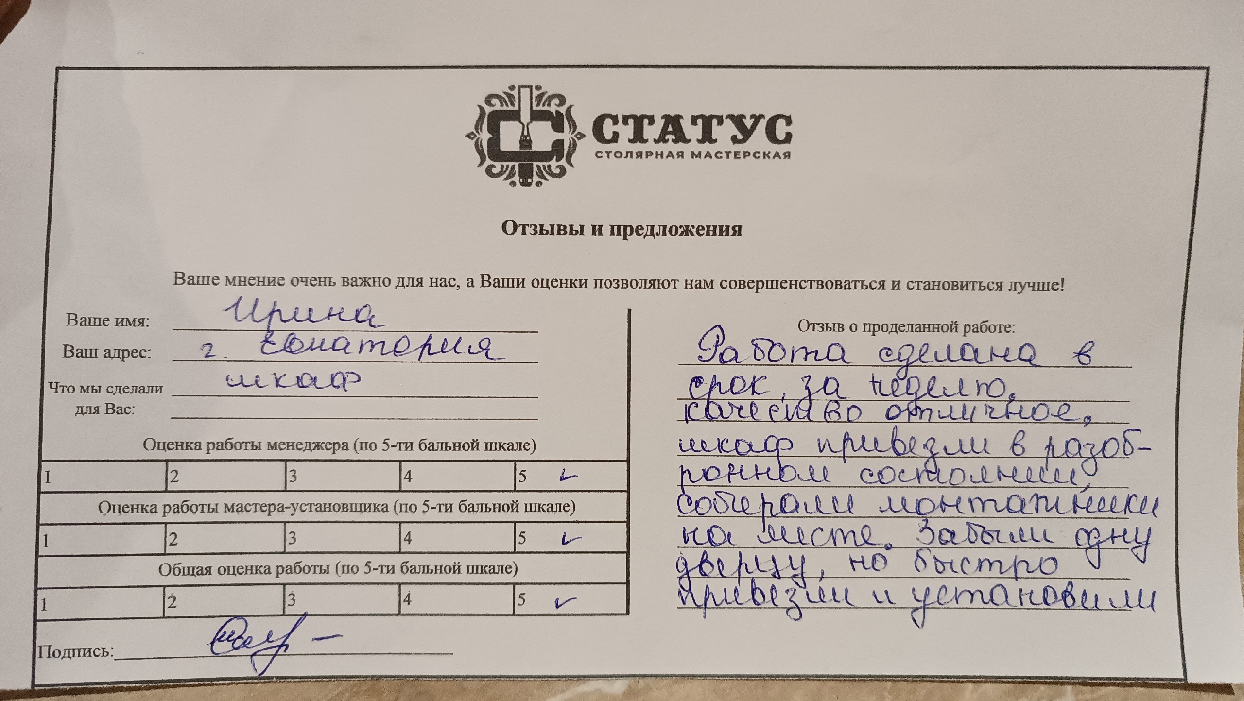 Отзывы о нашей работе!